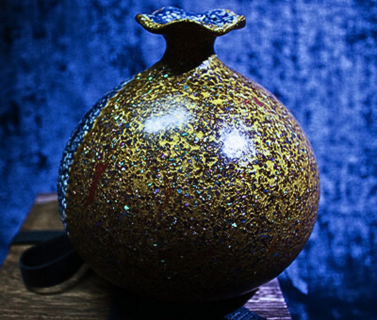 螺鈿的天然貝殼光澤,彷彿海洋流轉的光影,細膩且變幻無窮;而瓷器的釉面則如歲月沉澱的底色,溫潤而通透。當兩者結合,螺鈿的光影在釉彩中輕舞飛揚,色彩層次豐富,猶如靈魂在物質間綻放光芒,展現時間與自然的詩篇。