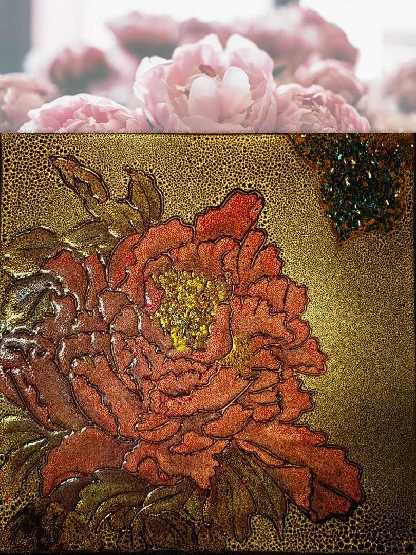 綻放牡丹-瓷版畫