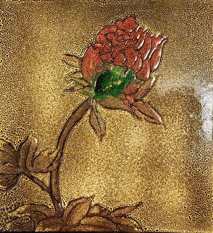 為了追求更豐富的質感與光澤效果,運用了天然漆,具有細膩的光澤與溫潤的質感,使牡丹花的花瓣呈現出自然的光澤與立體感。