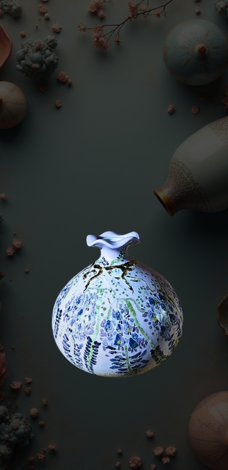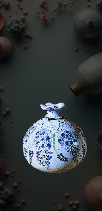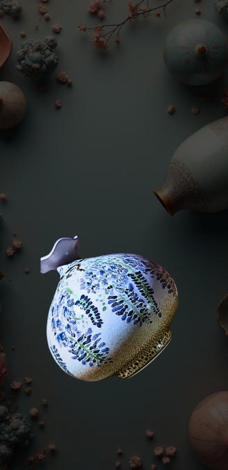 無論是盛裝佳釀還是插滿花卉,它都散發著淡雅詩意,不僅是實用器具,更是空間裡的藝術焦點,讓使用者沉浸於紫煙與紫藤交織的美學氛圍。